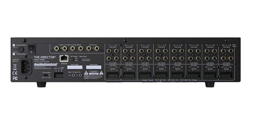 The Director Model D4600 offers both system amplification and programmable signal processing via IP. Configure graphic and parametric EQ, crossovers, volume control, zone grouping, network monitoring and more using the onboard DSP.