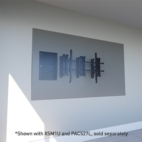 Optionally install Chief storage solutions such as the PAC526 in-wall box or on-wall CSPR component storage panel to secure AV equipment behind the display.