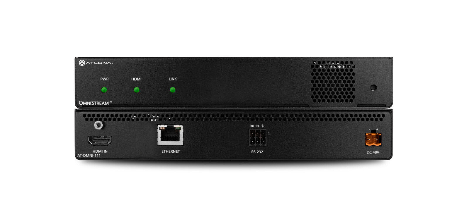 Atlona OMNI-111. Maximum video resolution: 4096 x 2160 pixels. Bitrate at maximum video resolution: 900 Mbit/s. Product colour: Black, Certification: CE, FCC, cULus, RoHS, CCC, RCM. Security algorithms: 128-bit AES. Power consumption (typical): 13 W